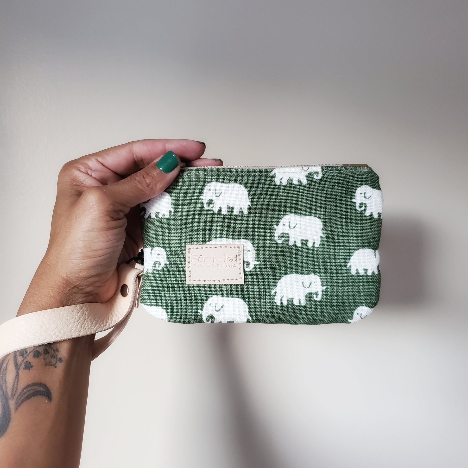 Add a touch of whimsy to your everyday carry with these elephant print zippered pouches. So easy to stash in your bag! Holds all the li"ll important things that always fall to the bottom of your bag.