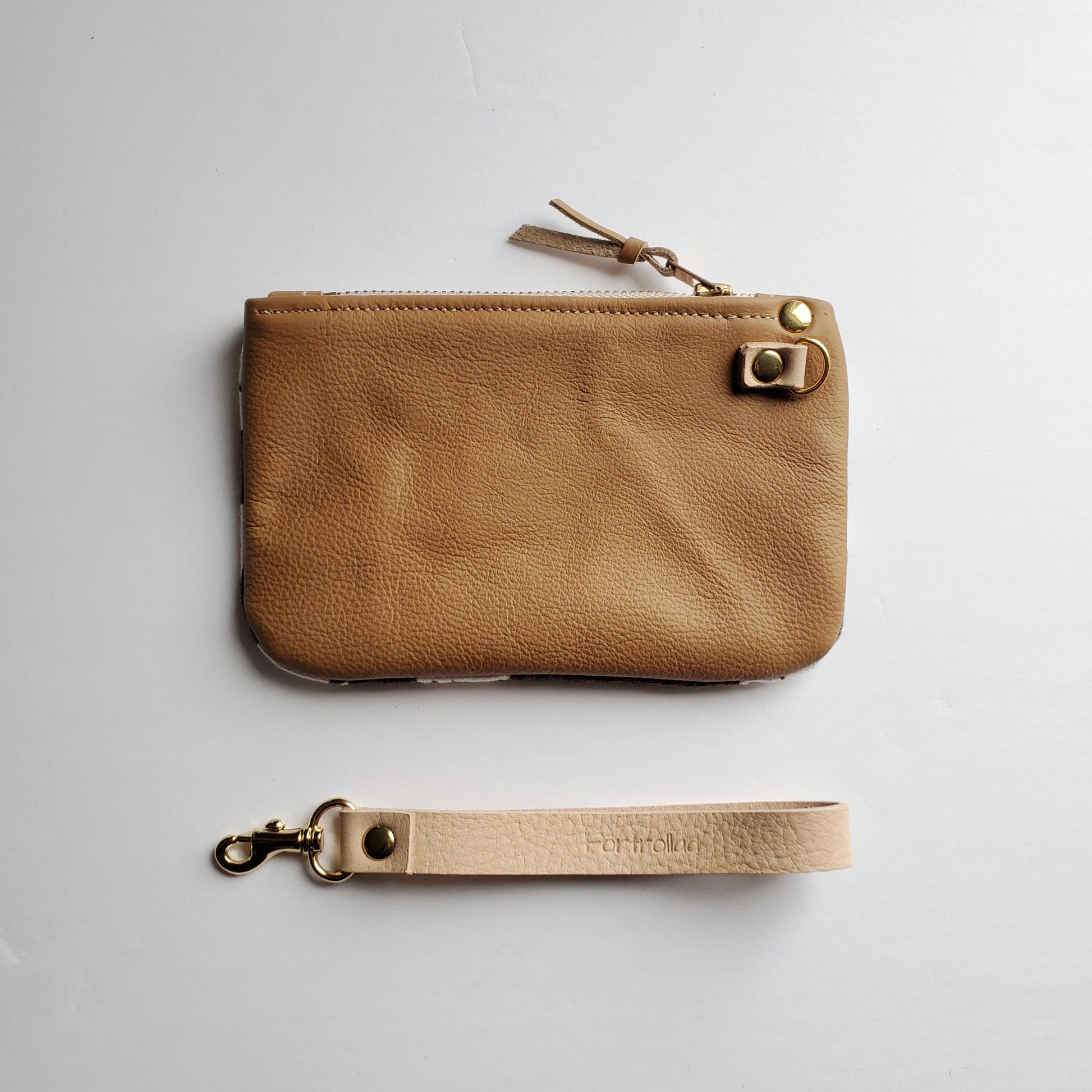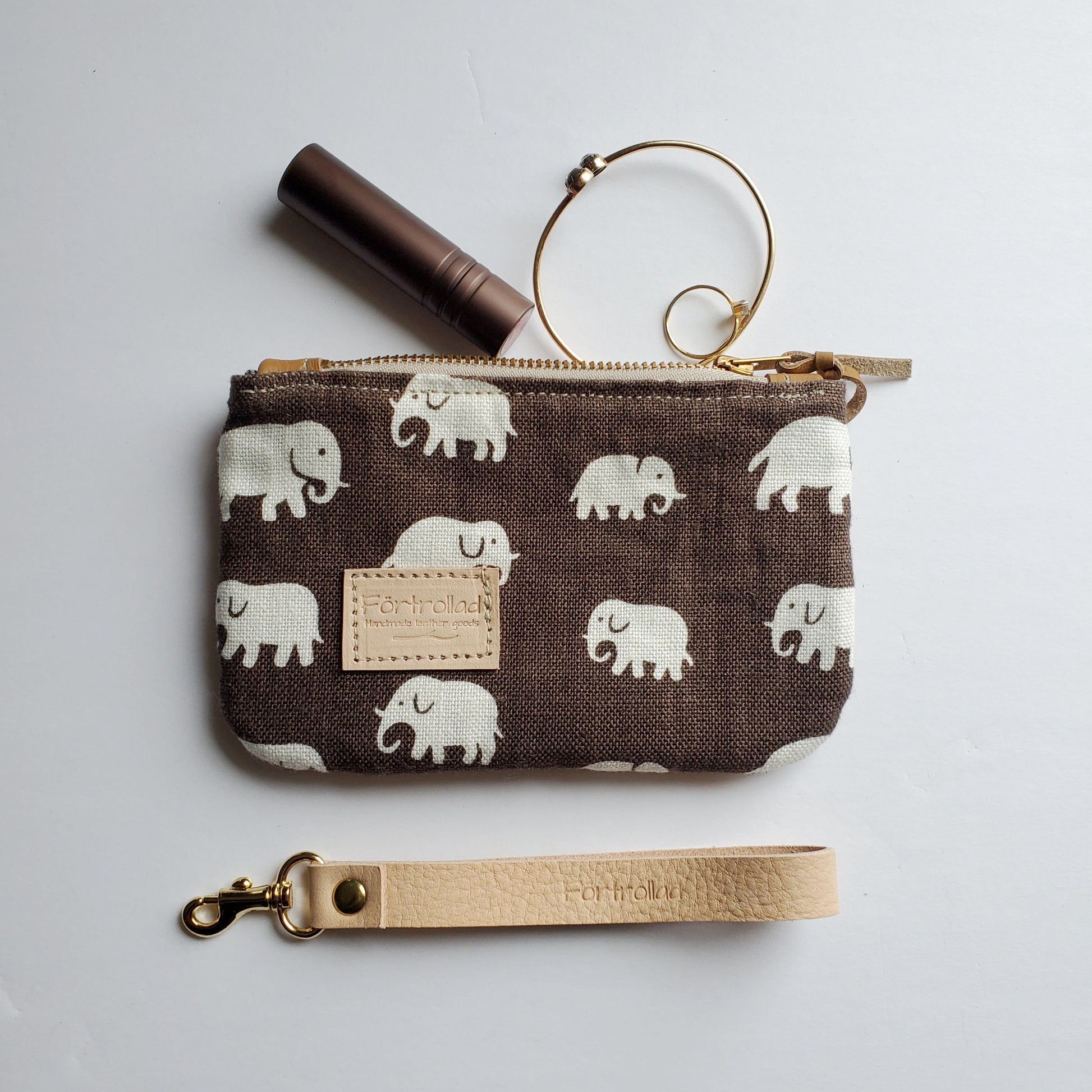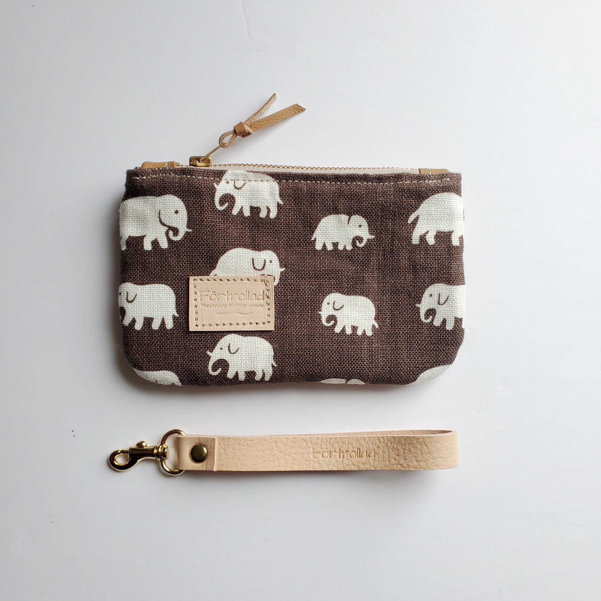 Hlin zippered pouch with wrist strap - chocolate