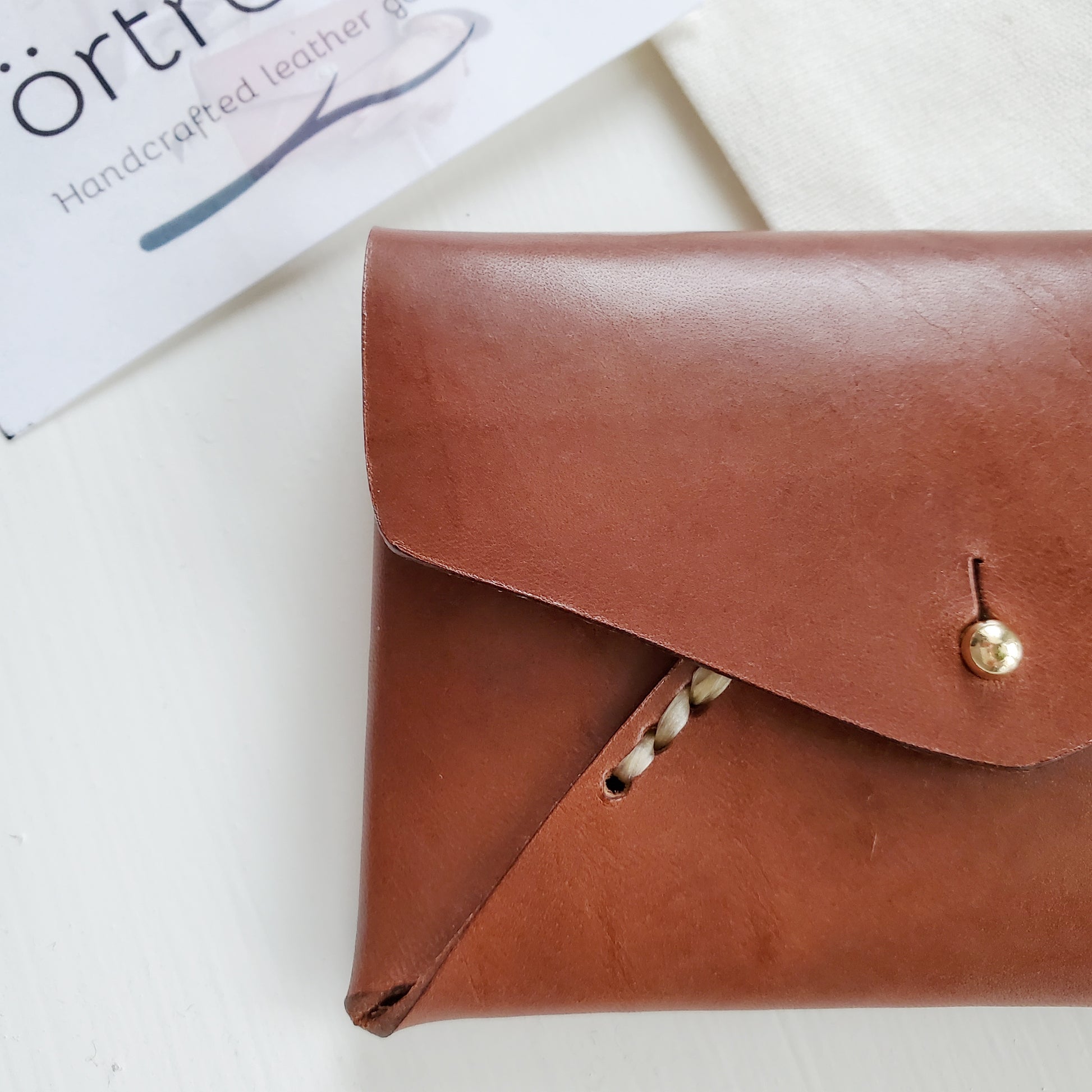 Easy to pack, easy to carry with you to the store, afternoon coffee or when you just don't want to bring the bag. The Idun card case is handcrafted out of quality vegetable tanned Wickett and Craig leather. Adorned with a brass closure ♡