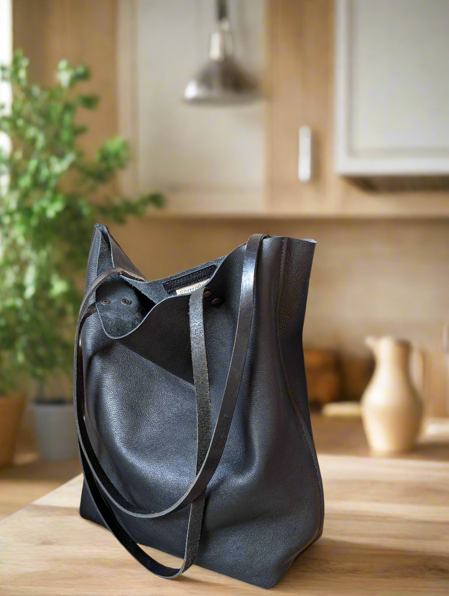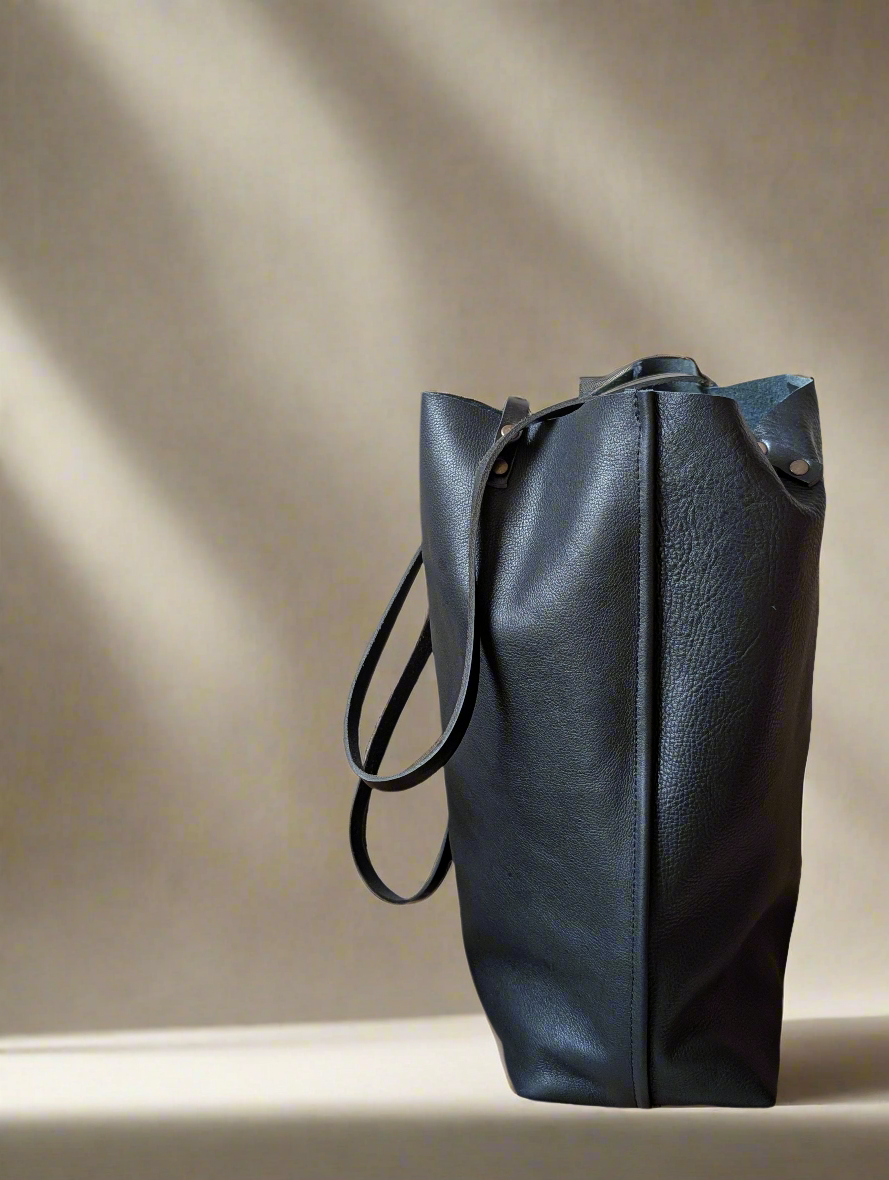 The Midgård Essential Tote is the perfect everyday accessory for any style. Made with supple leather, this understated tote offers a spacious and unlined interior. Its sturdy straps, with a 13" drop, make it comfortable to carry. To keep it looking like new, simply clean with a damp cloth and moisturize regularly. Height 13.5", width 10.5", gusset 4".