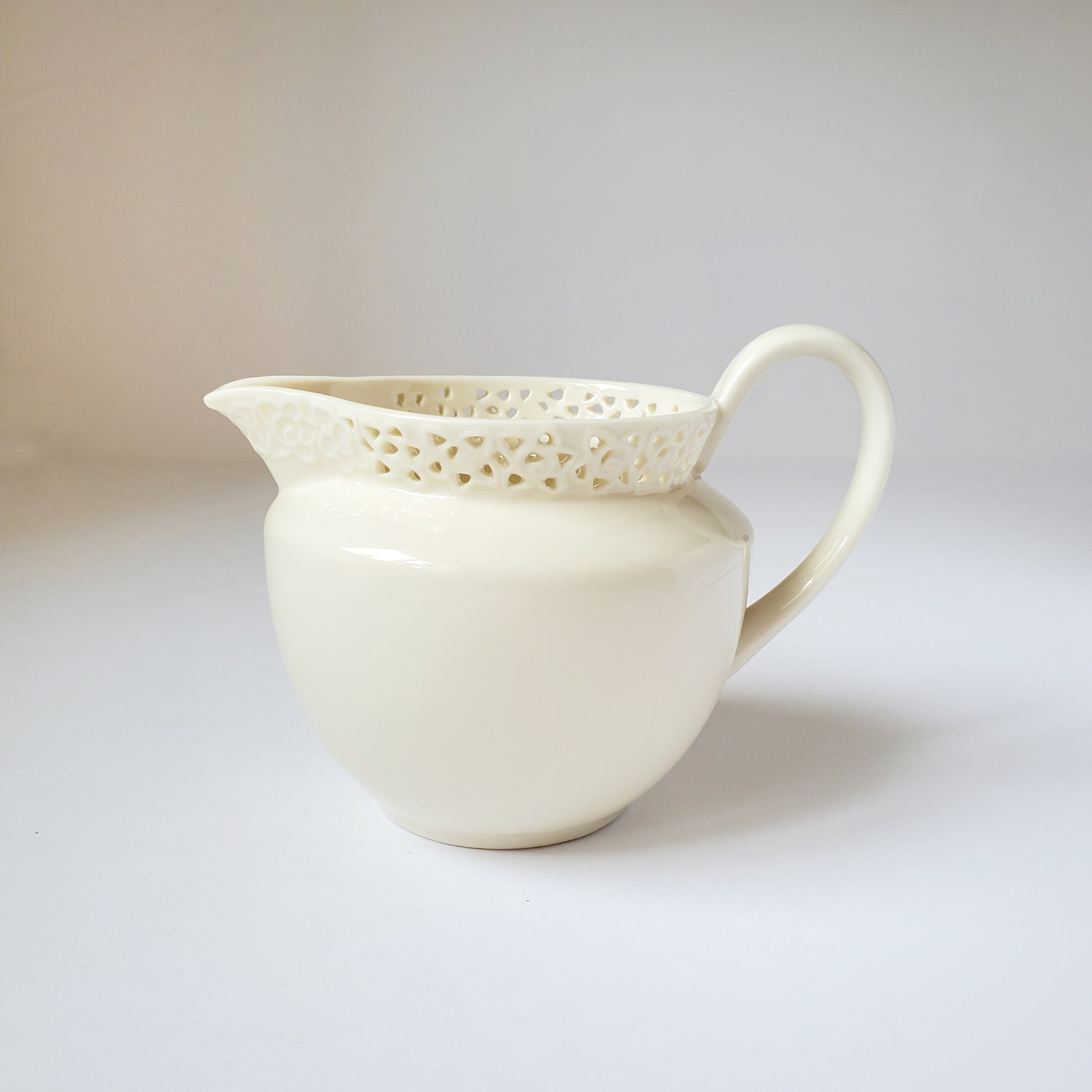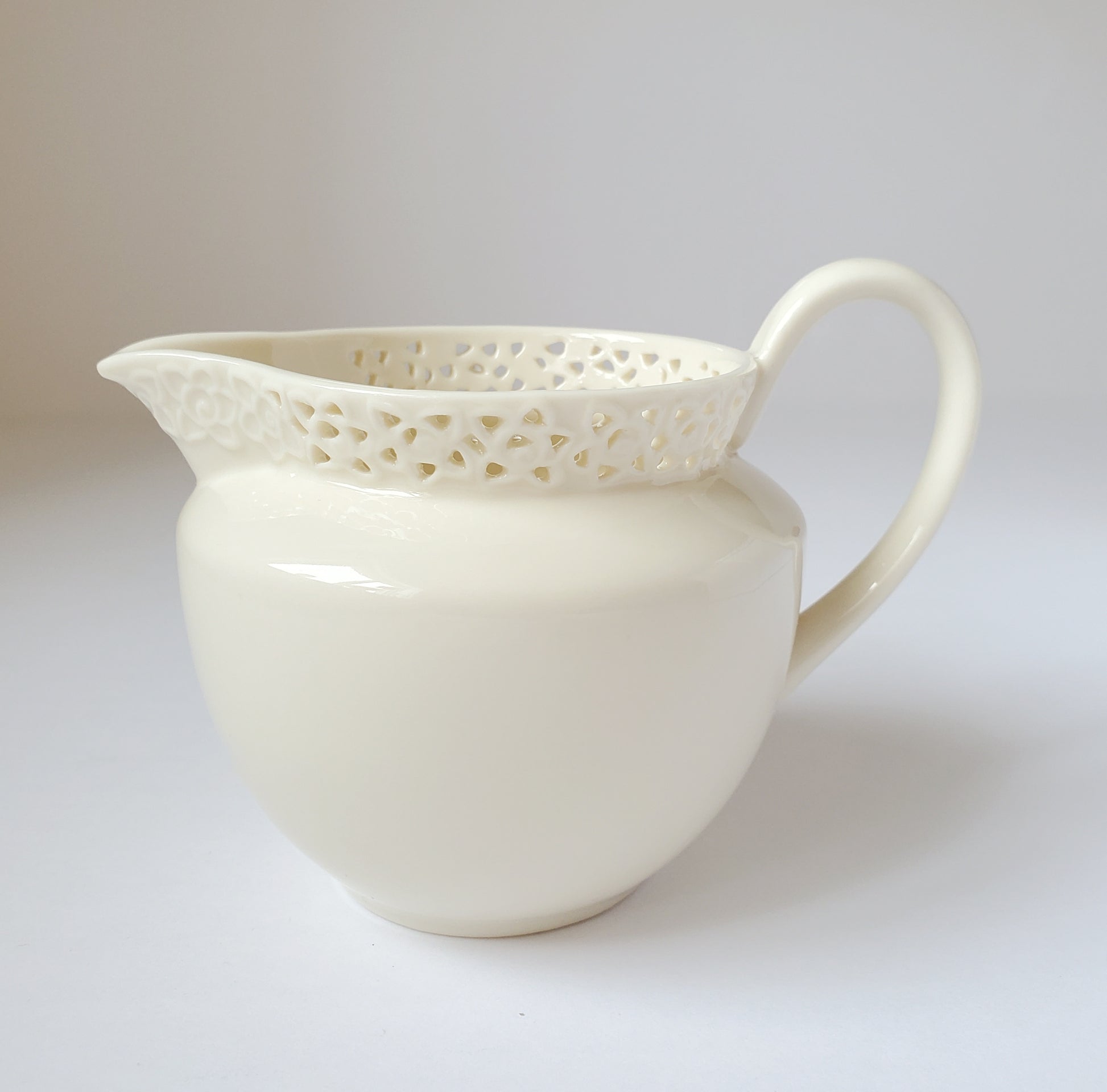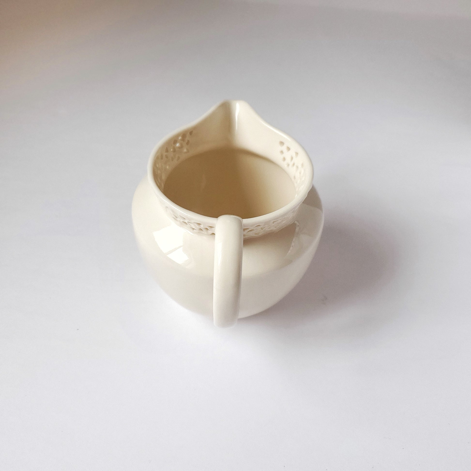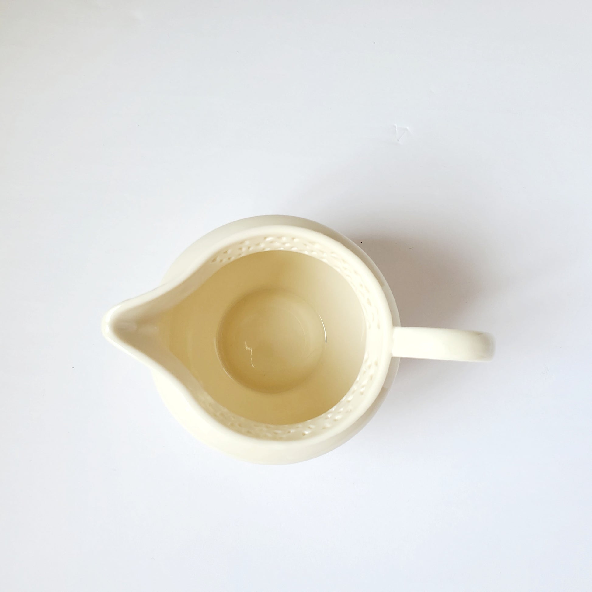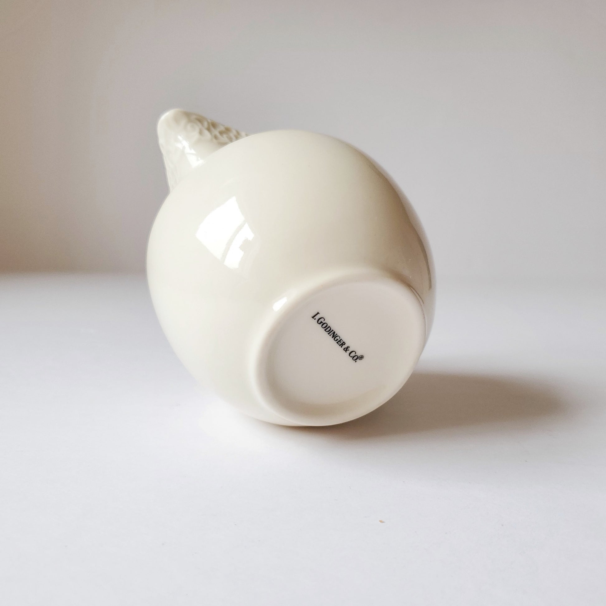 I. Godingen & Co. vintage porcelain creamer is adorned with an intricate lace crown.